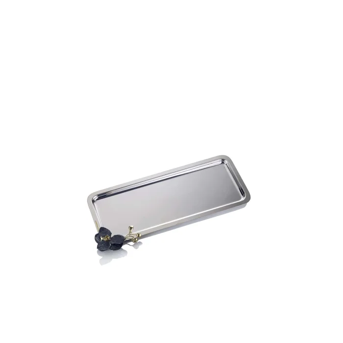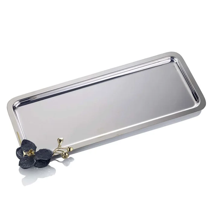 Width: 12 cm Height: 8 cm Gold/GlassHandmade tray with silver plated oxidized orchid and bud detail.