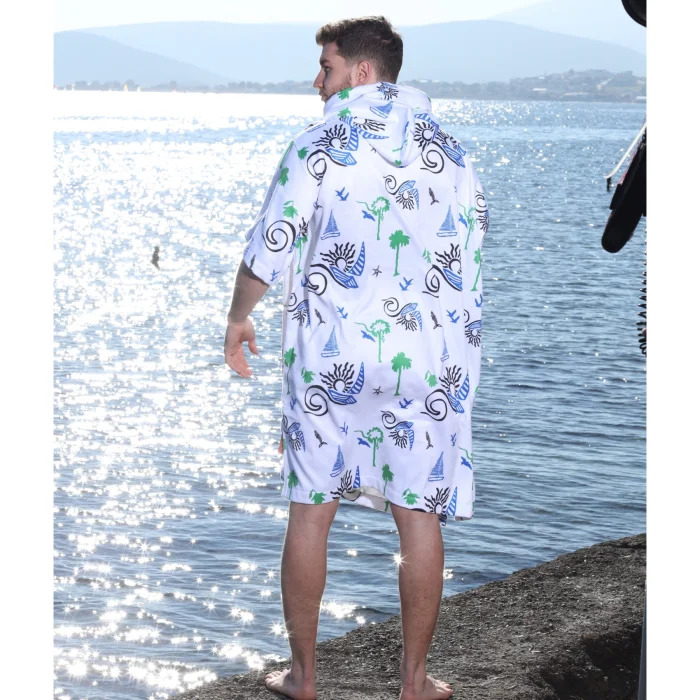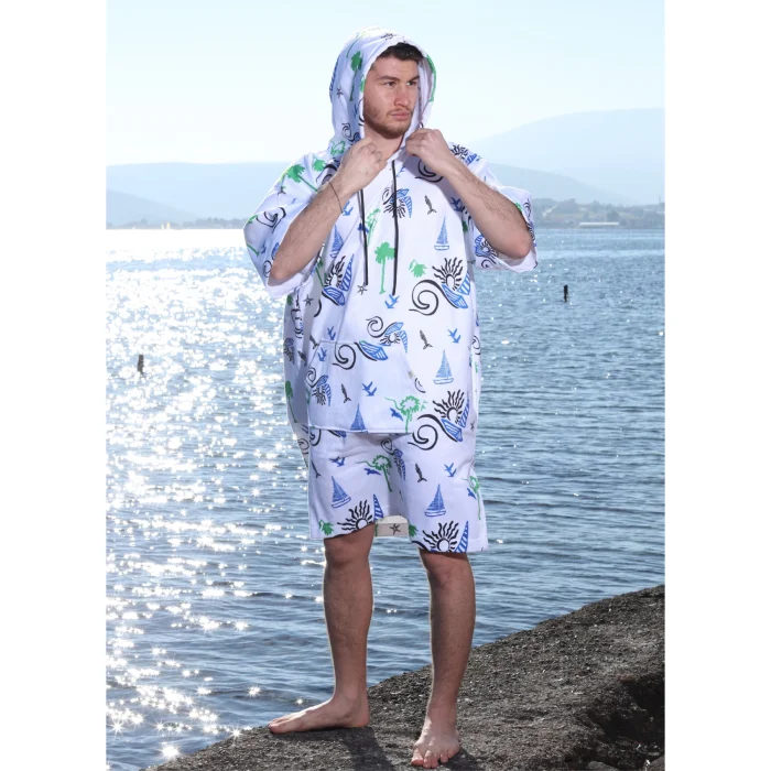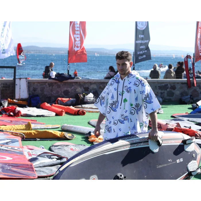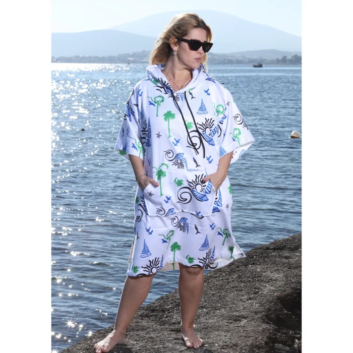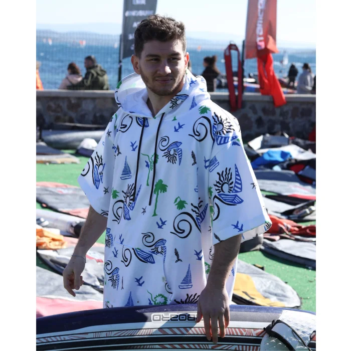 Adade Surf Poncho; It is a functional product that offers superior comfort after the sea, pool and all outdoor activities, and draws attention with its 100% cotton inner surface and brand-specific patterned outer fabric. Thanks to its highly water-absorbent terry fabric, it provides fast drying, and its patterned texture on the outer surface completes your style.