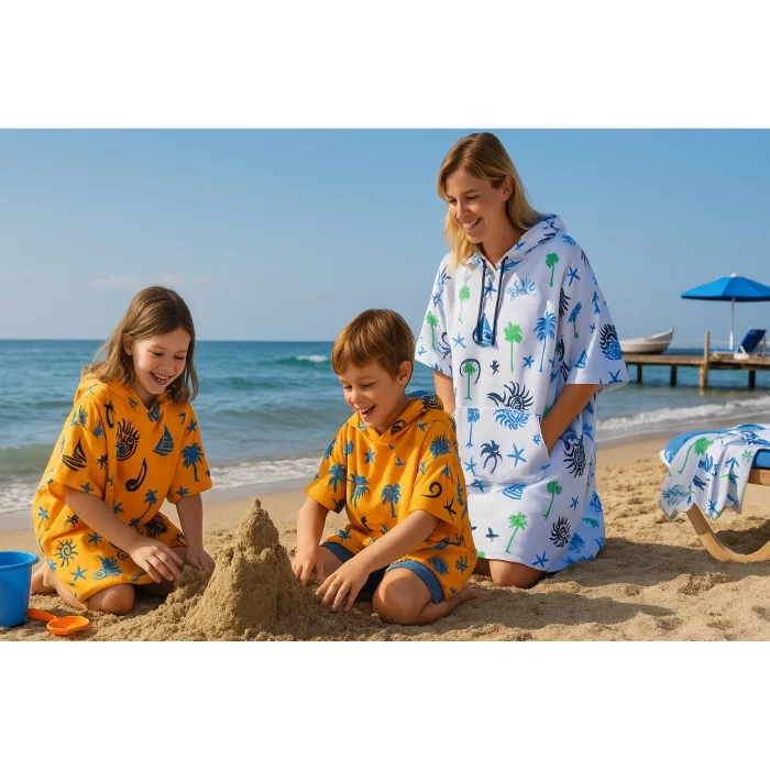 Thanks to its innovative side pockets, it offers the opportunity to easily change your wet swimsuit even in crowded environments. The kangaroo pocket on the front is a detail that is both stylish and functional. It is suitable for unisex use and caters to all age groups, from children to adults.