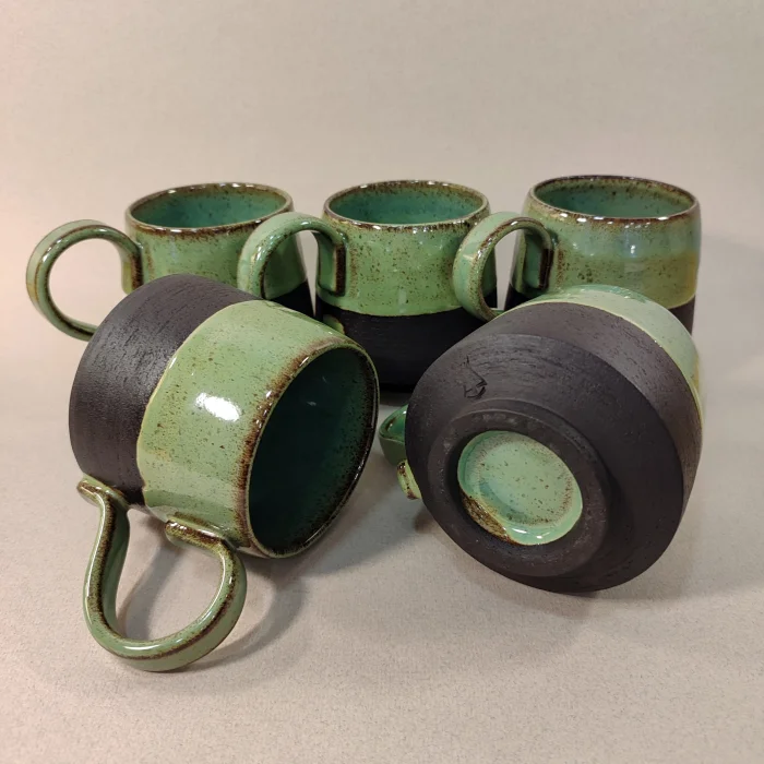 On a potter's lathe, the stoneware is shaped with mud and fired to a high degree with my own glazes.