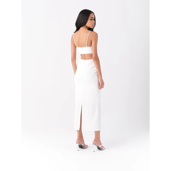 Midi dress with knitting detail. Crepe fabric that does not stretch. Designed to fit the body perfectly. Model wears size XS. Dimensions;