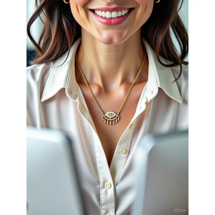 Steel chain necklace with eye figure enriched with gold-plated zircon stones