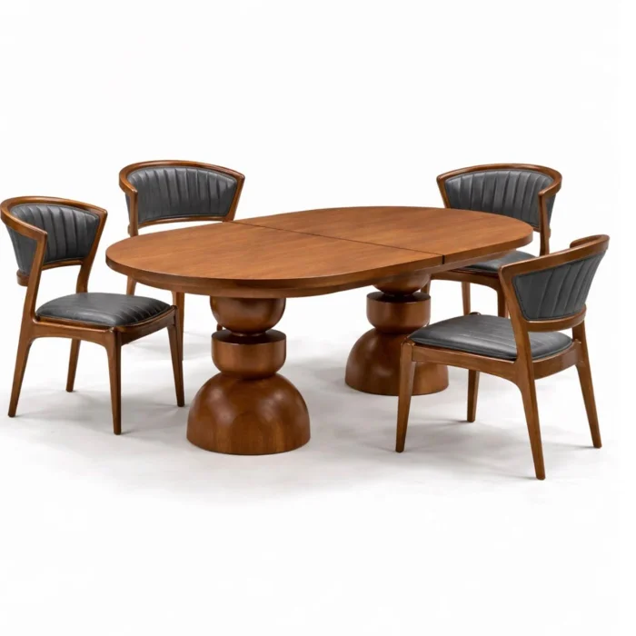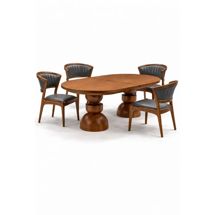 Product: 160cm Oval Cup Extendable Dining Table Set | 4 Beech Wood Chairs