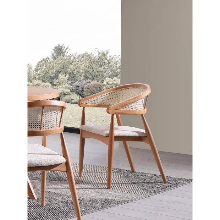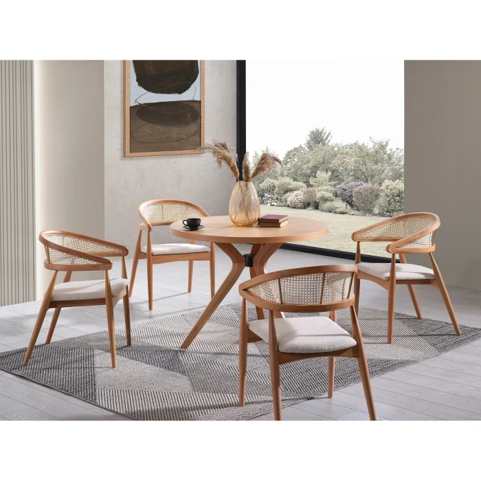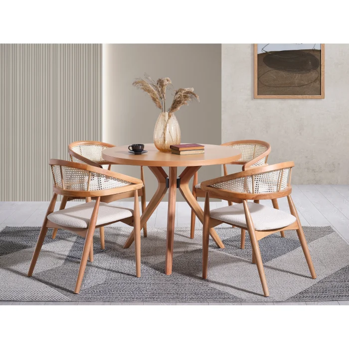 , the top table is made of natural veneered MDF, the legs are made of beech wood.