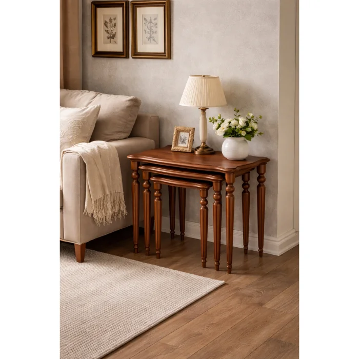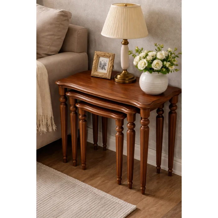 Classic Lathe-legged Wooden Nesting Coffee Table Set