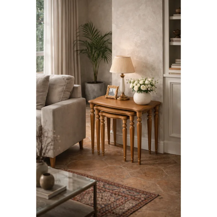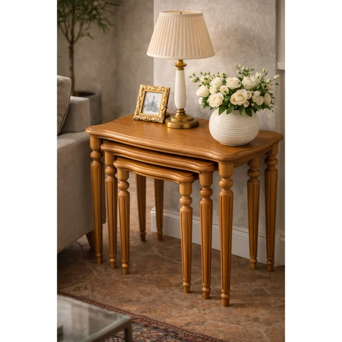 Product: Classic Lathe-legged Wooden Nesting Coffee Table Set