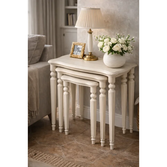 Product: Classic Lathe-legged Wooden Nesting Coffee Table Set