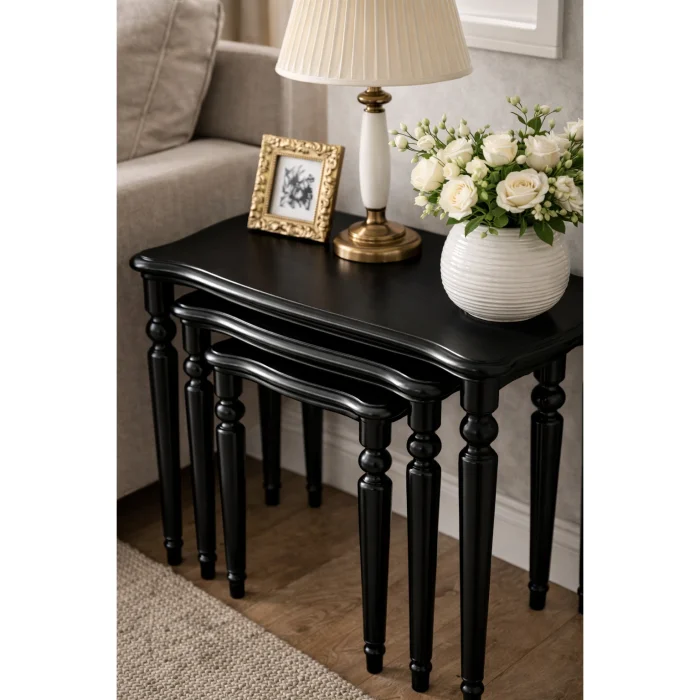 Product: Classic Lathe-legged Wooden Nesting Coffee Table Set