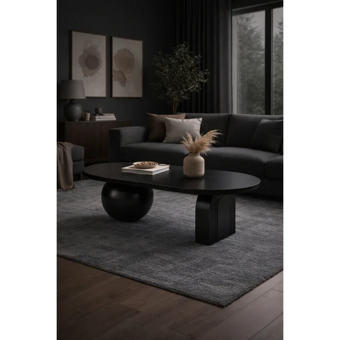 Product: Oval Wooden Coffee Table - Modern Double Leg Design - 128×80 Cm