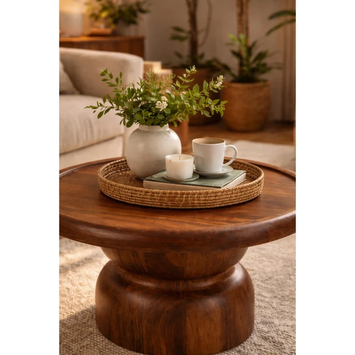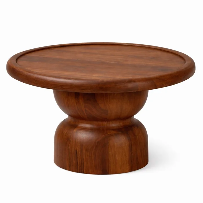 Product: Round Wooden Coffee Table - Classic Modern Design With A Single Leg - 80 Cm