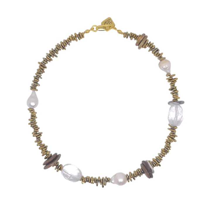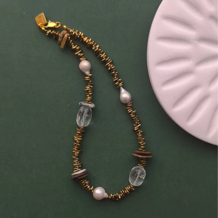 Natural Stones Used: Gold hematite + crystal quartz + baroque pearl + turquoise