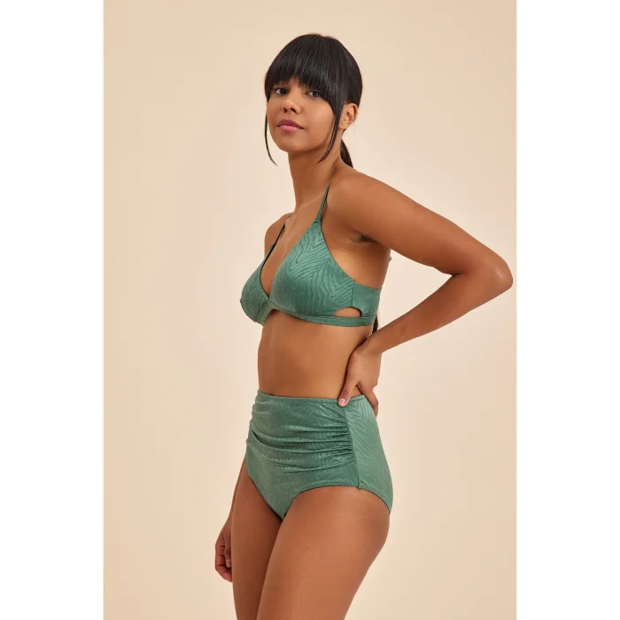 Designed for an elegant look on the beach, Bali high waist bikini bottoms combine comfort and elegance. This product, which draws attention with its unprinted self-patterned fabric, is enlivened with drape details on the front and back. The overalls seam on the leg and the high waist structure provide a perfect fit that hugs the body and at the same time offer a comfortable wearing experience. Completed using front and back lining, these bikini bottoms offer a high level of performance in terms of both style and durability. If you don't want to compromise on your style while enjoying the beach and pool, these high-waist print bikini bottoms are for you. It is a candidate to be the choice of those looking for elegance and comfort!