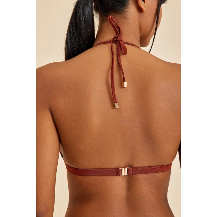 Specially designed for those looking for elegance and elegance on the hot days of summer, this bikini top brings together all your wishes. This design, which stands out with its finely embroidered stylish fabric and tulle details, also draws attention with an elegant window detail in the décolleté in front. While the waist weed around the décolleté adds a modern touch to the design, it provides a perfect fit thanks to its functionally adjustable straps. Thanks to its metal clip, it provides a safe and stylish look. The stitching details in the style of the jumpsuit are one of the features that distinguish this bikini top from the rest. While it offers an open-back look with its neck-tie design, it also completes your style with its metal tie end details. This bikini top, which will make you feel special both on the beach and in the pool, is a candidate to be the favorite of those looking for elegance.