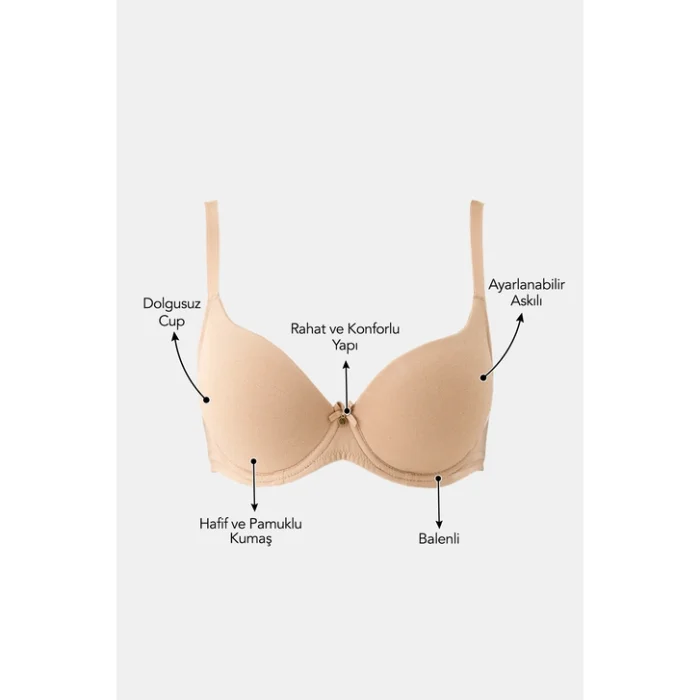 >This underwired, padded combed cotton bra; It maximizes daily comfort with its soft texture, breathable structure and natural form design. Each advantage has been specially selected to strengthen the user experience.