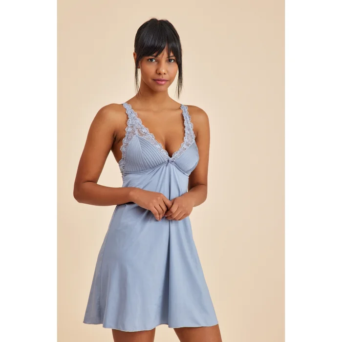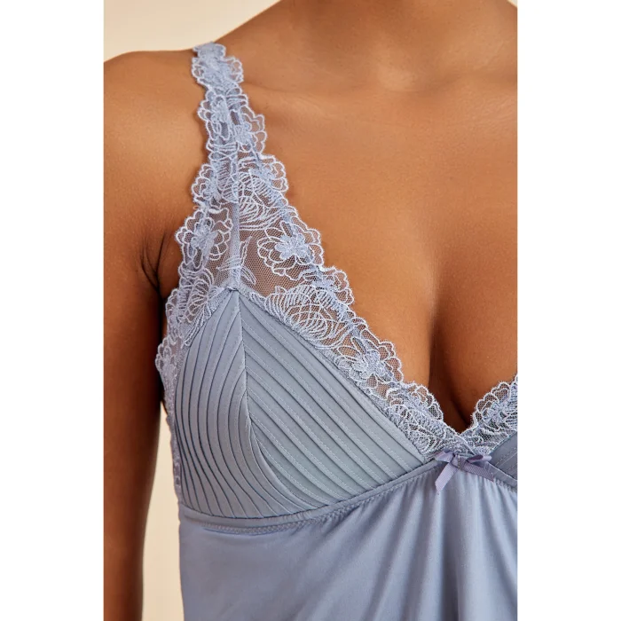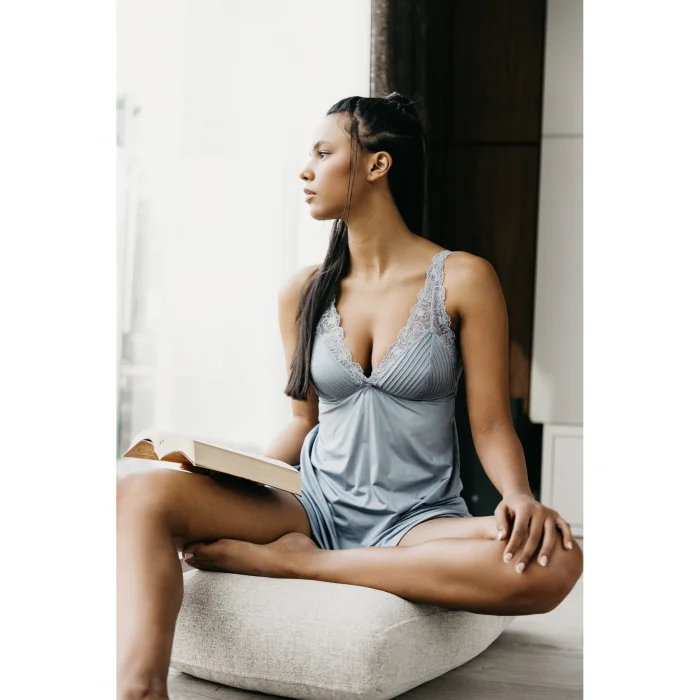 Specially designed for an elegant and sophisticated nightgown experience, this piece provides a light touch to your skin with its soft texture. The ribbed details add to the appeal of the nightgown, while the sewn sponge cap and piping detail at the waist give you the perfect comfort experience. Elegant details on the back offer an eye-catching décolleté, while the back and adjustable ornate straps provide comfort and harmony to your body. The harmony of ribbing and embroidery combines elegance and elegance, making the nightgown unique. This specially crafted nightgown is an ideal choice for an unforgettable night, prioritizing both aesthetics and comfort.