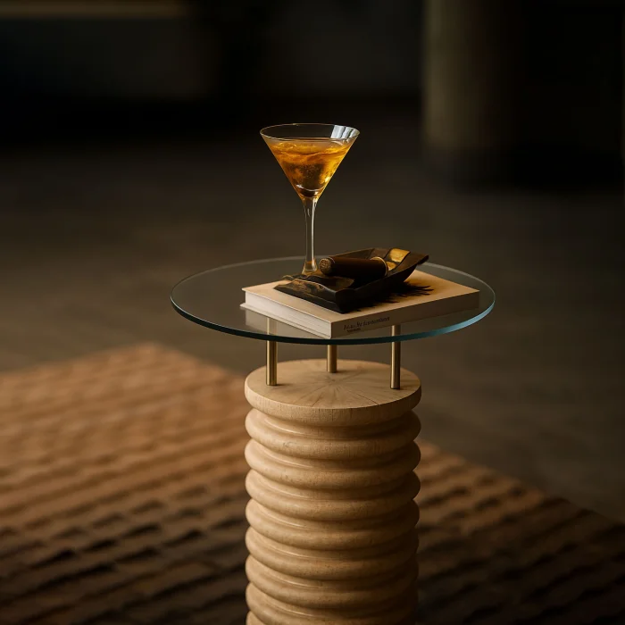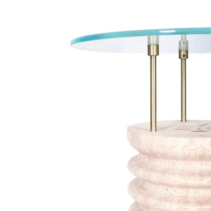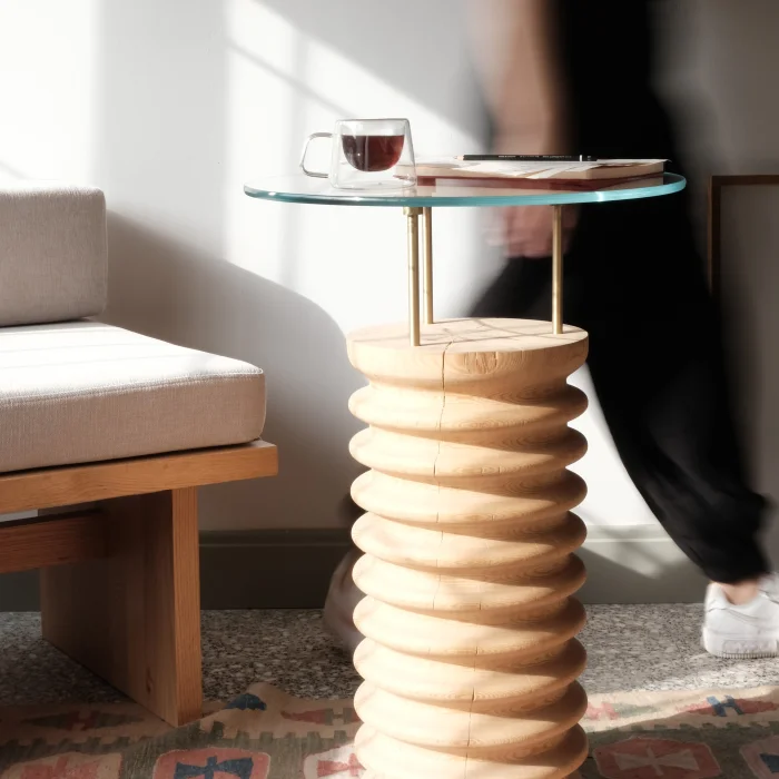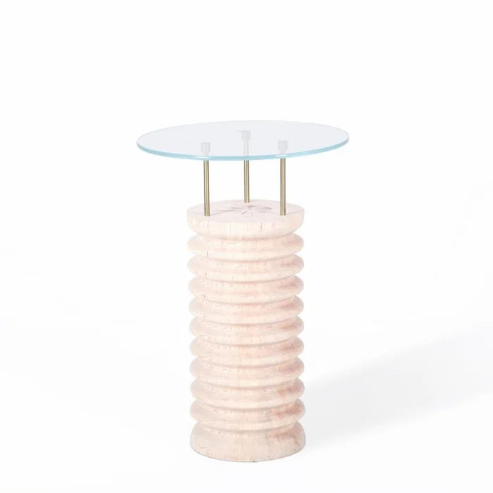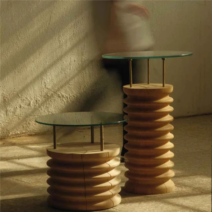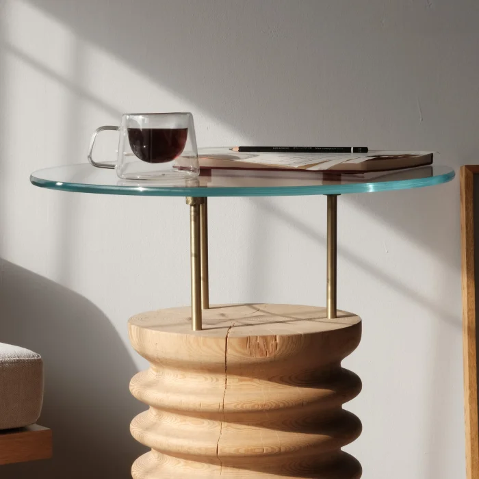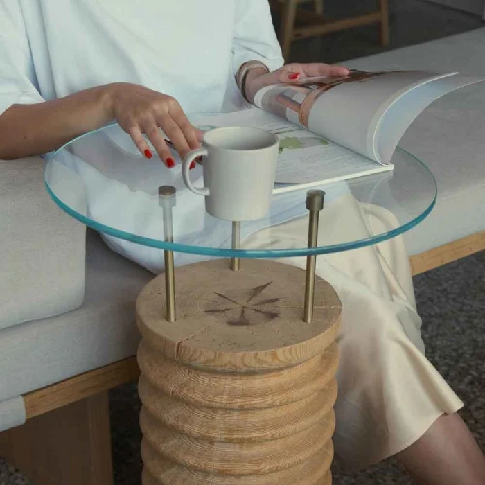 Cedar Wood Side/coffee Table With Round Glass Top - Sofra Series