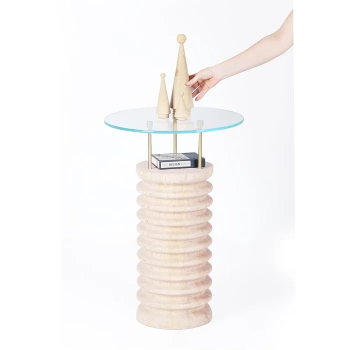 Product: Cedar Wood Side/coffee Table With Round Glass Top - Sofra Series