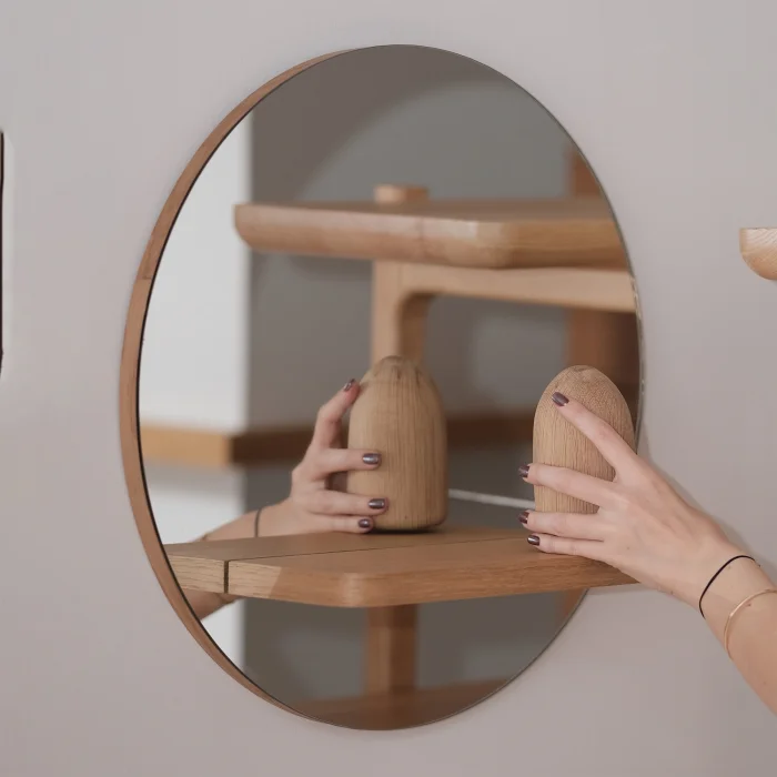 Product: Rounded Mirror With Oak Shelf