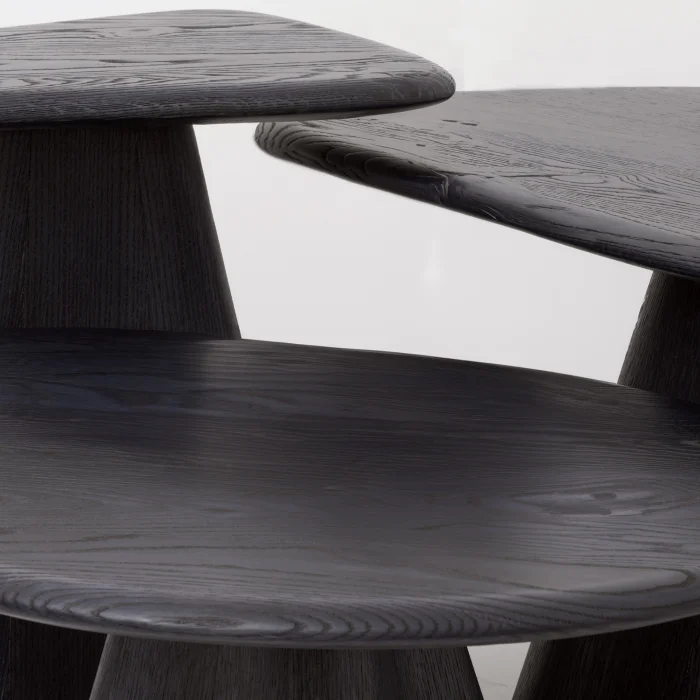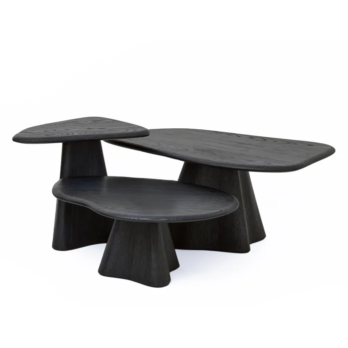 The LAGOON series solid oak coffee table set came to life with the careful handicraft of master hands. Pushing the limits of wood with its natural, organic form, this set of 3 displays a light and delicate appearance when viewed from the side with its concave edge structure. Its natural oak texture and original design immediately adapt to your living space, bringing a unique warmth.