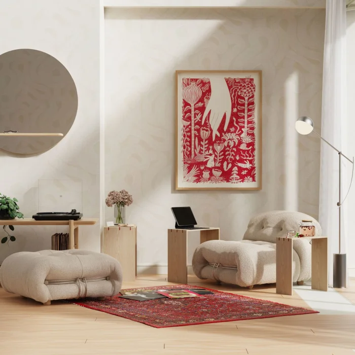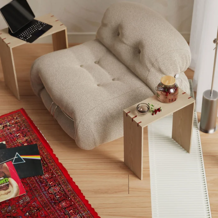 Combining the warm texture of natural oak veneer with solid walnut details, Saloon Essentials nesting tables offer lightness and easy portability together thanks to their slim profile of only 12 mm. Delivery time to cargo is 30 business days.