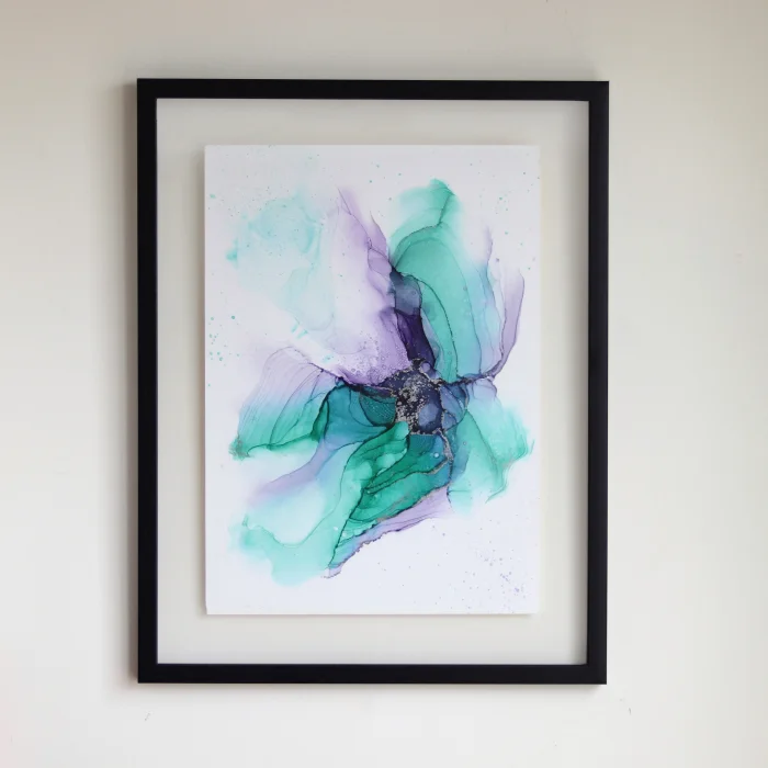 Product: Purple And Green Silver Floral Wall Abstract Art