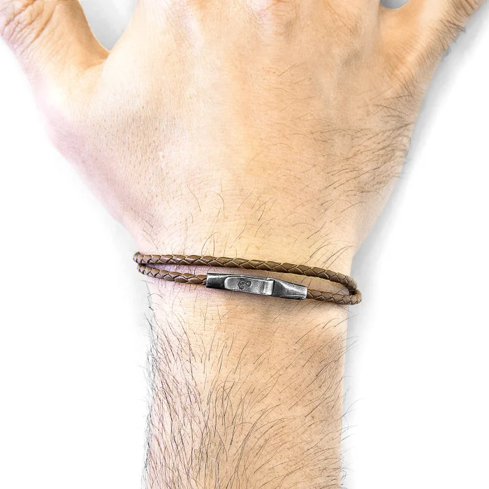 The Light Brown Liverpool Silver and Braided Leather Bracelet was both designed and skilfully handcrafted completely in Great Britain. Combining British craft manufacturing with a discerning modern-minimalist style, this ANCHOR & CREW bracelet features: