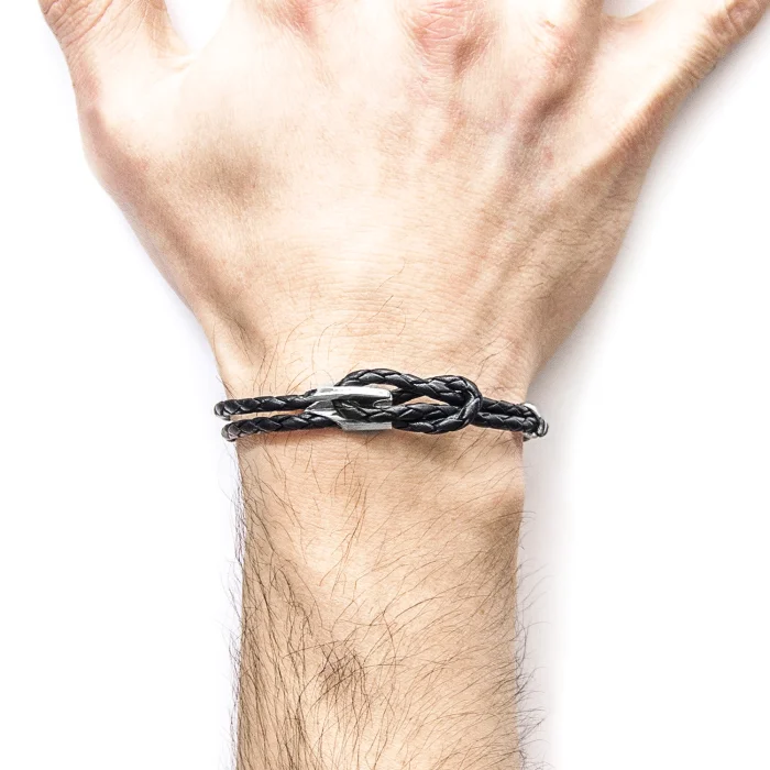 The Coal Black Padstow Silver and Braided Leather Bracelet was both designed and skilfully handcrafted completely in Great Britain. Combining British craft manufacturing with a discerning modern-minimalist style, this ANCHOR & CREW bracelet features: