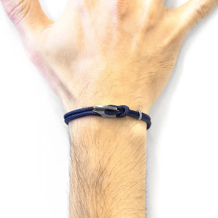 The Navy Blue Padstow Silver and Rope Bracelet was both designed and skillfully handcrafted completely in Great Britain. Combining British craft manufacturing with a discerning modern-minimalist style, this ANCHOR & CREW bracelet features: