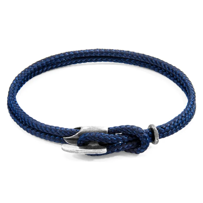 The Navy Blue Padstow Silver and Rope Bracelet was both designed and skillfully handcrafted completely in Great Britain. Combining British craft manufacturing with a discerning modern-minimalist style, this ANCHOR & CREW bracelet features: