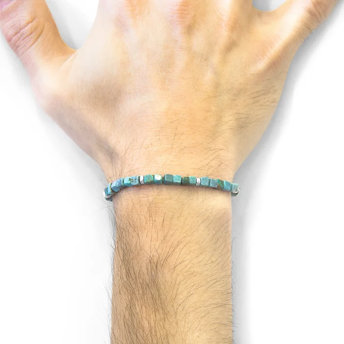 The Blue Turquoise Tekapo Silver and Stone Bracelet was both designed and skilfully handcrafted completely in Great Britain. Combining British craft manufacturing with a discerning modern-minimalist style, this ANCHOR & CREW bracelet features: