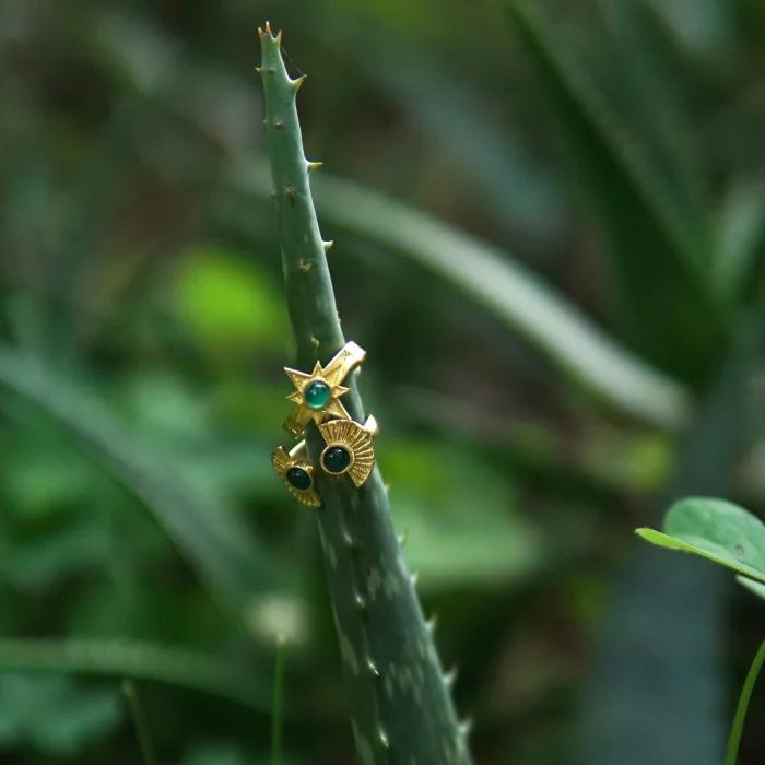 It is made of natural stone and brass. Since it is adjustable, it is compatible with all fingers. Due to the 100% natural materials, there may be slight variations in color and pattern.