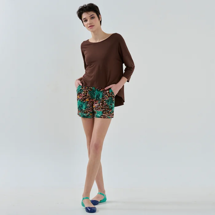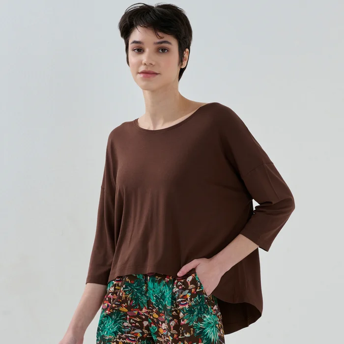 Made of 96% Viscose 4% Elastane Knitted Fabric Size S: Bust 59, Front size 53, Back size 62 Size M: Bust 61, Front size 55, Back size 64 Size L: Bust 63, Front size 57, Back size 66 Model Dimensions: Bust 81 Waist: 63 Hips: 93 Height: 172 The product on the mannequin is size S.