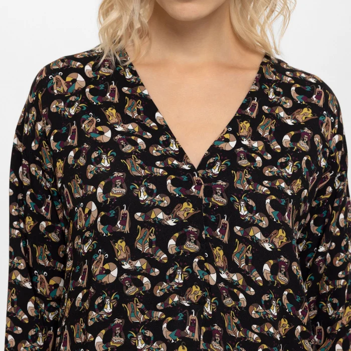 Made of 100% Viscose Woven Fabric Size S: Bust 50, Overall size 105 Size M: Bust 52, Overall size 107 Size L: Bust 54, Overall size 109 Model Dimensions: Bust 81 Waist: 63 Hips: 93 Height: 172 The product on the mannequin is size S.