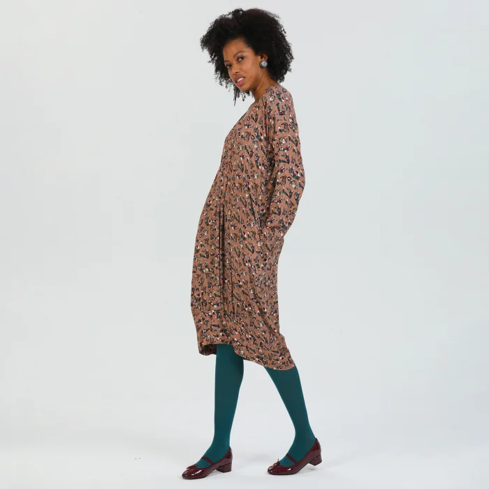 Made of 100% Viscose Woven Fabric Size S: Bust 50, Overall size 105 Size M: Bust 52, Overall size 107 Size L: Bust 54, Overall size 109 Model Dimensions: Bust 81 Waist: 63 Hips: 93 Height: 172 The product on the mannequin is size S.