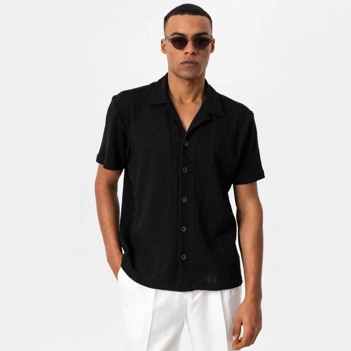 Antioch Short Sleeve Shirt, which stands out with its unique stance in black dominance, impresses with its luxurious design that reflects the characteristic silhouette. The Short Arm is complemented by a design closure. The design, which will make you feel extremely comfortable with its luxurious texture and pattern, adapts to use in your daily city styles and office suits. The design, which you can use with various trousers according to your wishes, allows you to gain a stylish and assertive look and takes your style one step further.