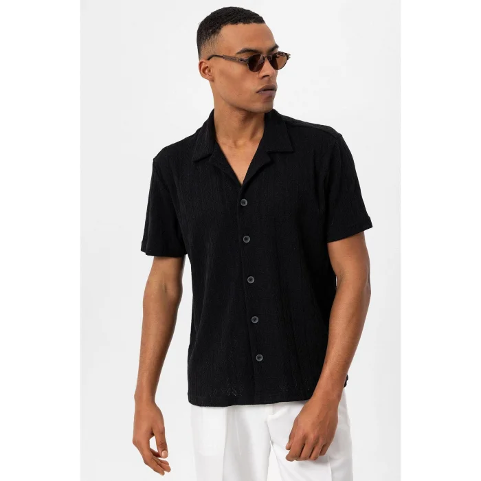 Antioch Short Sleeve Shirt, which stands out with its unique stance in black dominance, impresses with its luxurious design that reflects the characteristic silhouette. The Short Arm is complemented by a design closure. The design, which will make you feel extremely comfortable with its luxurious texture and pattern, adapts to use in your daily city styles and office suits. The design, which you can use with various trousers according to your wishes, allows you to gain a stylish and assertive look and takes your style one step further.