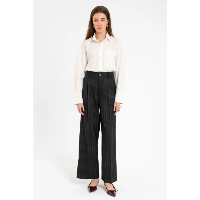 Product: High Waist Pleated Striped Trousers