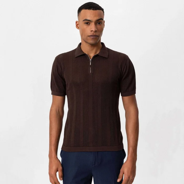 Product: Polo Neck Zippered Knitted T-shirt