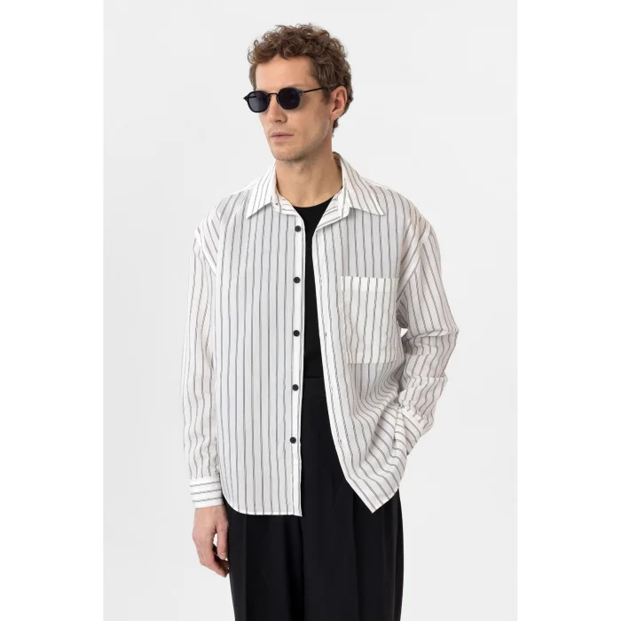 Editor's Note:Standing out with its original stance in the dominance of white, the Antioch Long Sleeve Shirt impresses with its luxurious design that reflects a characteristic silhouette. The Long Sleeve design is complemented by a button closure. The design, which will make you feel extremely comfortable with its luxurious texture and pattern, adapts to use in your daily city styles and office suits. The design, which you can use with various trousers according to your wishes, allows you to gain a stylish and assertive look and takes your style one step further.