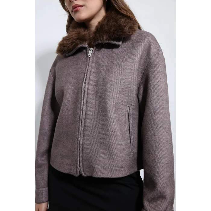 Wool Blend Faux Fur Collar Jacket