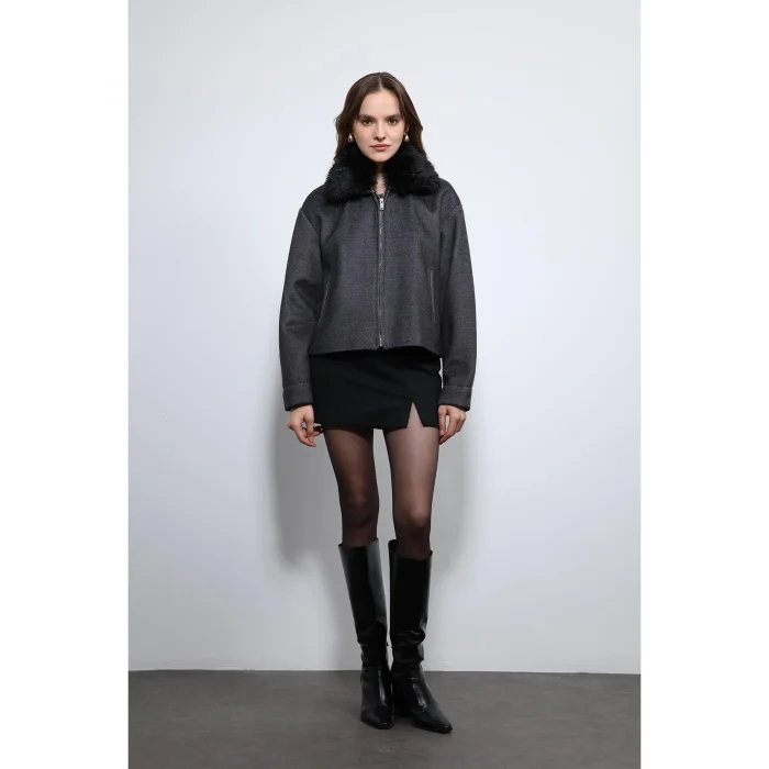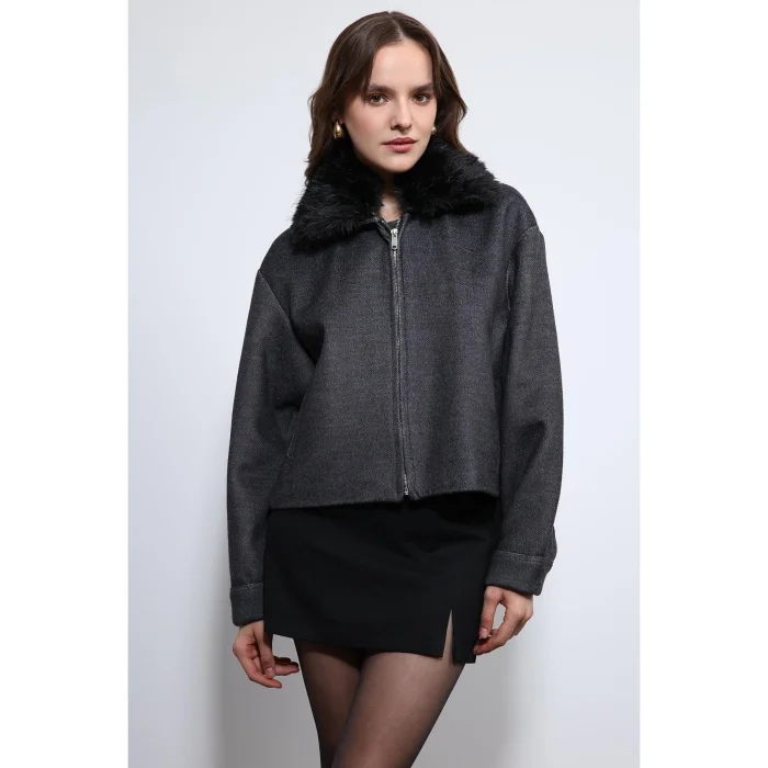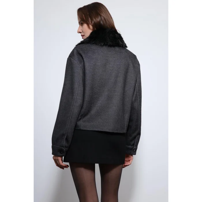 Wool Blend Faux Fur Collar Jacket