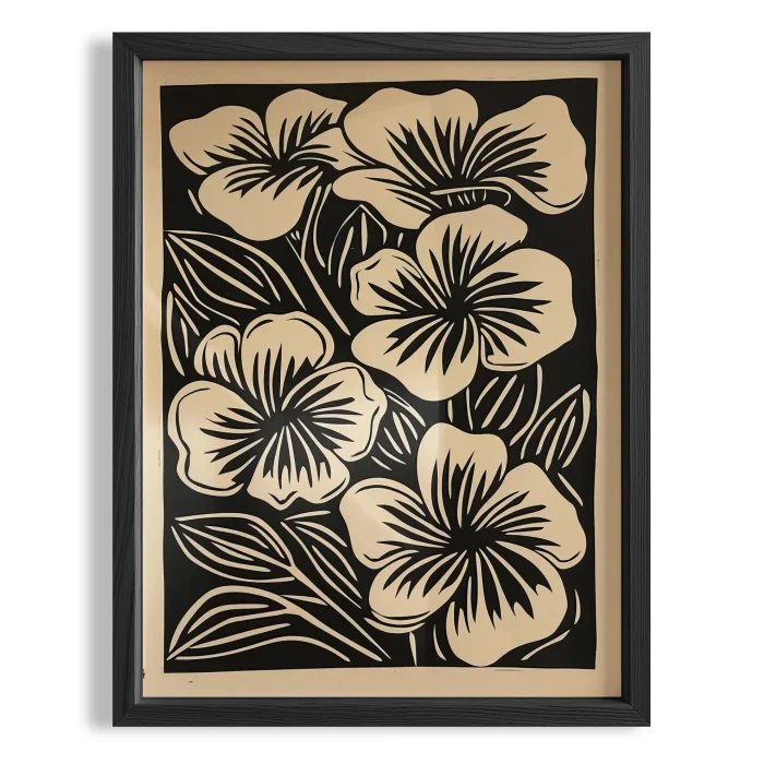 Product: Abstract Çiçekler - Siyah Bej Wooden Framed Wall Art