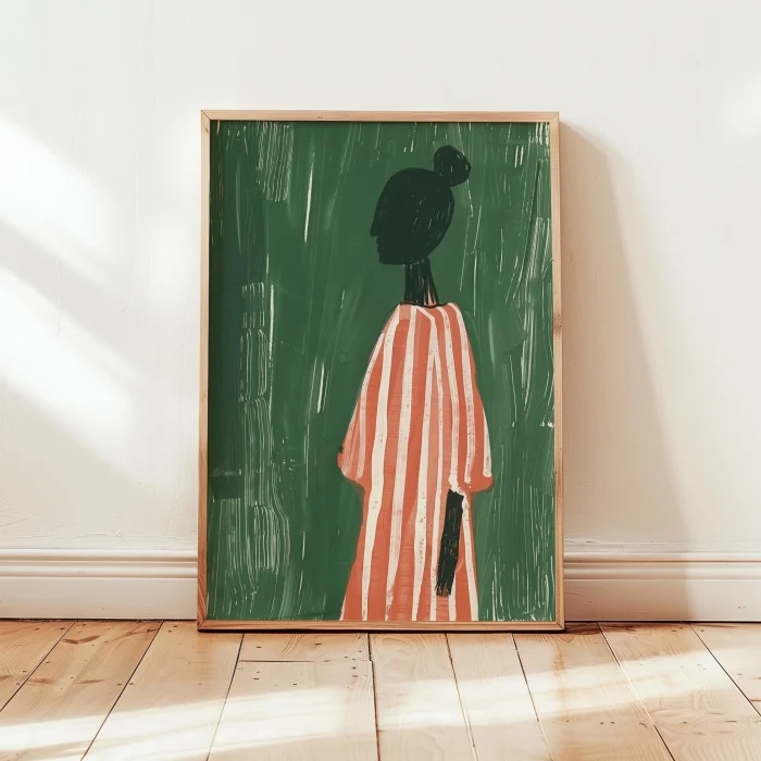 Product: Abstract Human Portresi - Pink Striped Wooden Framed Wall Art