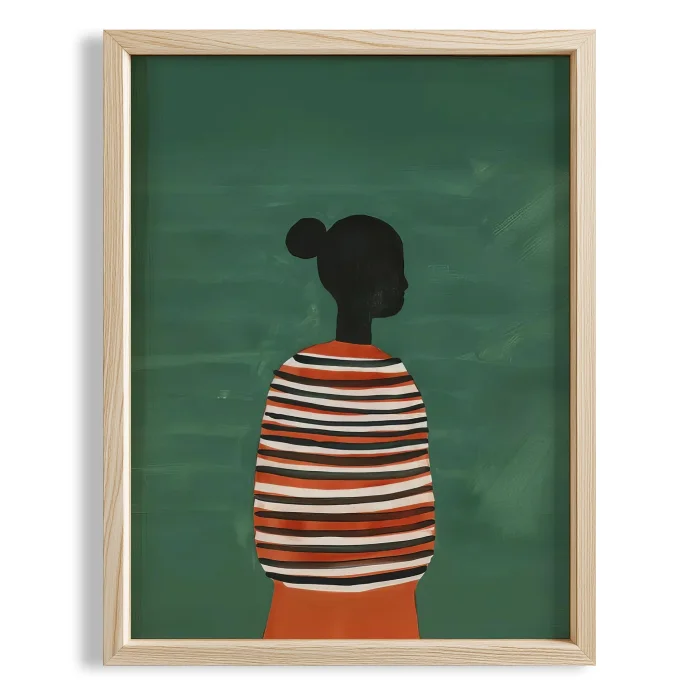Product: Abstract Human Portresi - Striped Wooden Framed Wall Art