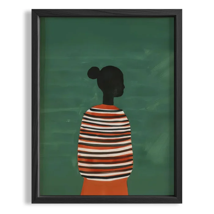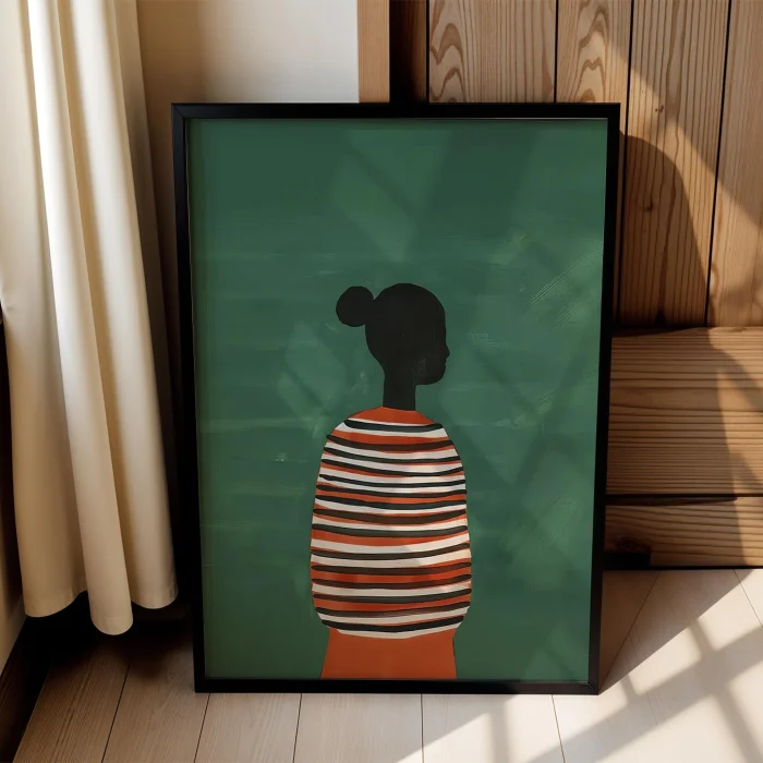 Product: Abstract Human Portresi - Striped Wooden Framed Wall Art