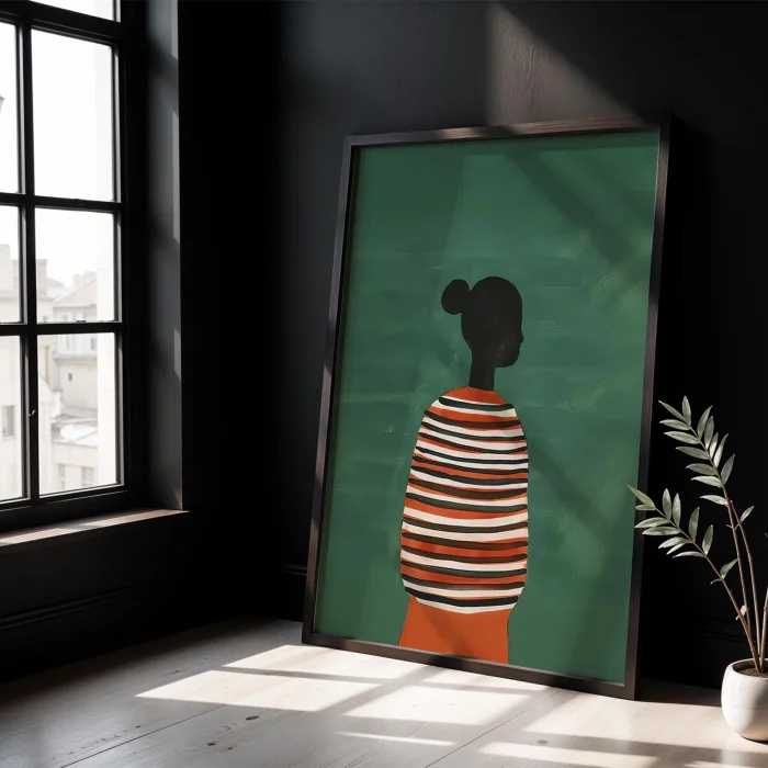 Product: Abstract Human Portresi - Striped Wooden Framed Wall Art
