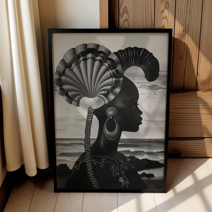 Product: Afro Silüet Wooden Framed Wall Art