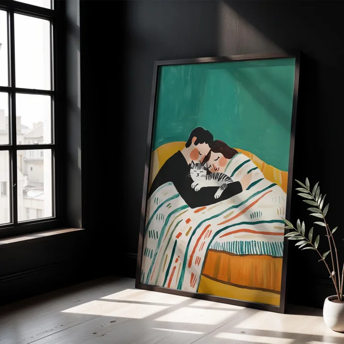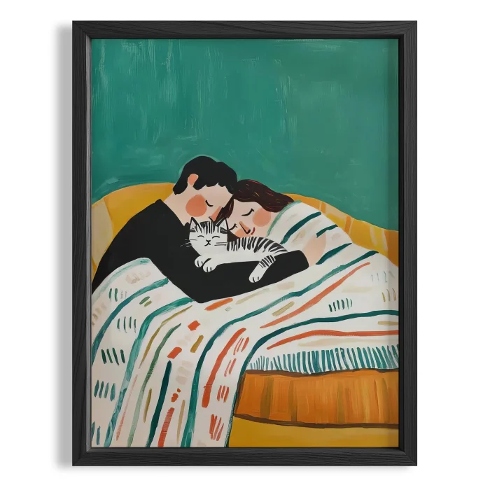 Product: Aşkın Sessizliği - Kedili Aile Wooden Framed Wall Art