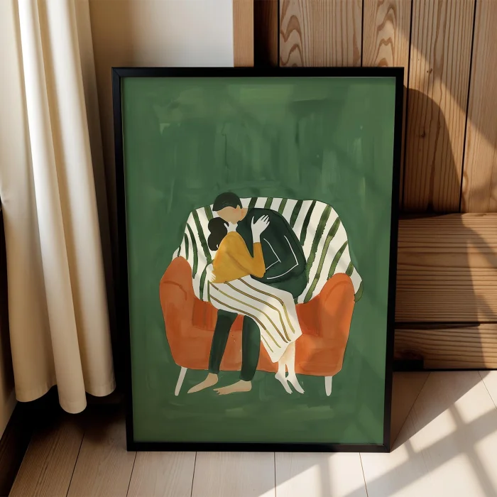 Product: Aşkın Sessizliği - Kucakta Sıcaklık Wooden Framed Wall Art