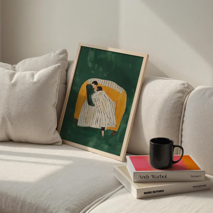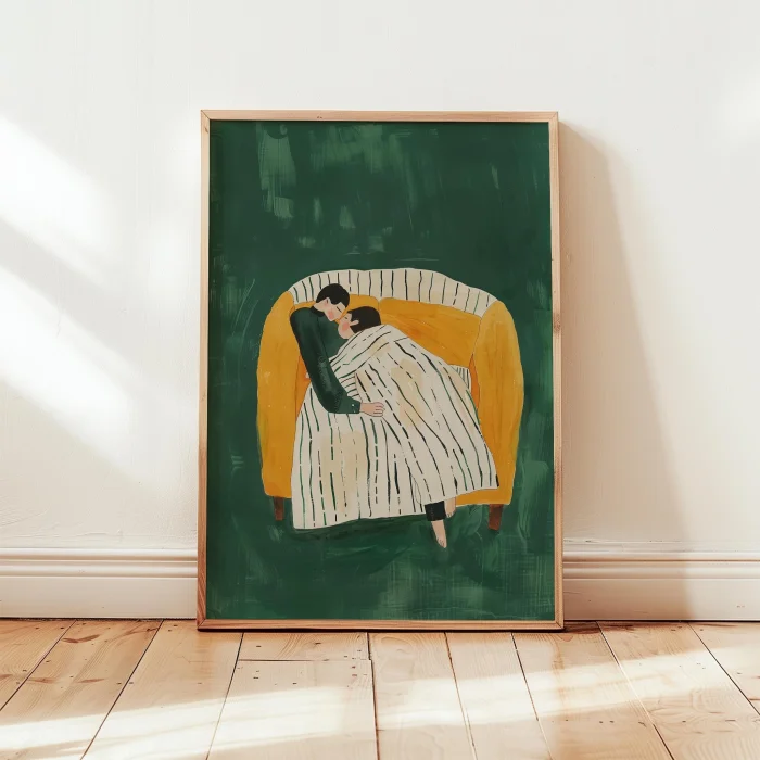 Product: Aşkın Sessizliği - Sarılıp Uyumak Wooden Framed Wall Art